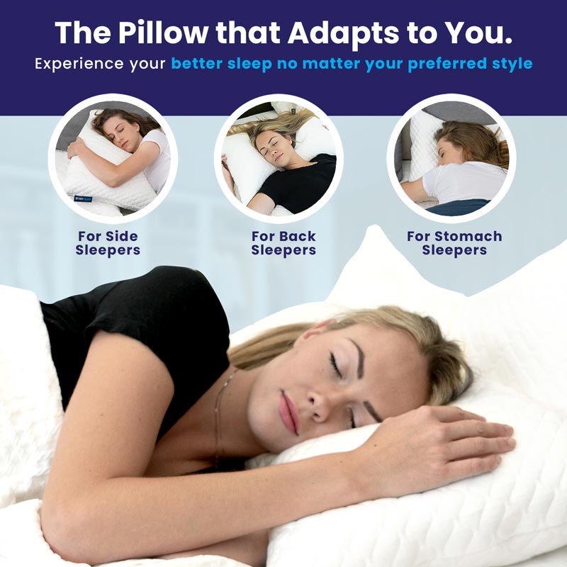 Our bestselling adjustable curved pillow that has helped thousands eliminate neck and shoulder pain and enjoy better sleep.