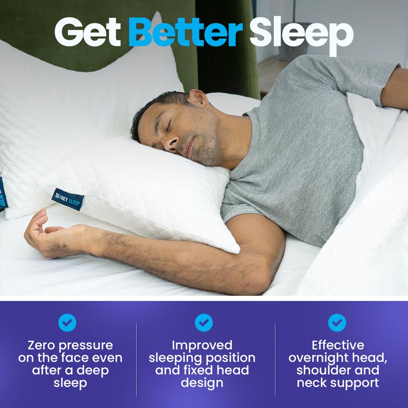 The Sidney Sleep pillow is constructed from a Bamboo Rayon outer layer which naturally inhibits the growth of bacteria, mold, fungus and dust mites, making it great for those with allergies to dust mites, feathers, or other natural pillow materials. This ensures that Sidney users wake up without puffiness, acne, and rashes caused by long-term allergen and bacterial exposure.