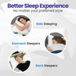 The curved shape contours to your shoulders, centering your head on the pillow providing firm yet soft support for your head and neck. This helps reduce tossing, turning and discomfort and allows your muscles to relax properly offering natural spinal support to your body.